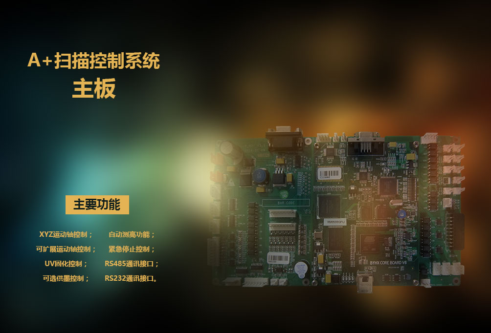 A+扫描控制系统使用USB 2.0作为主板到头板通讯接口,可最多接入8颗喷头,满足小型机器的基础配置需求。